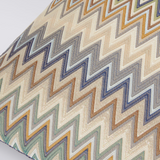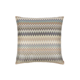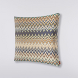A hypnotic weave traversed by zigzags characterizes the knitwork of the 60x60 cm Masuleh cushion.