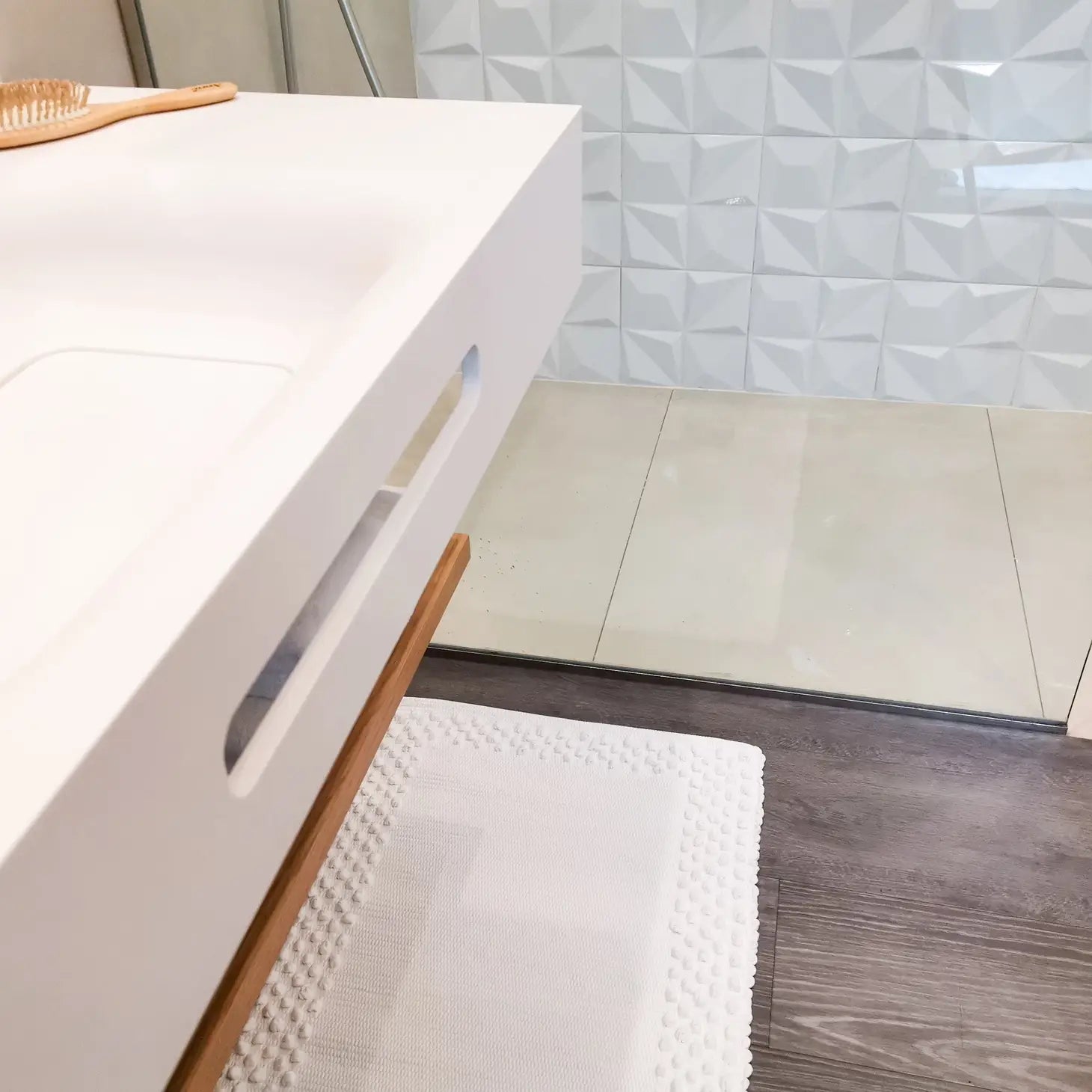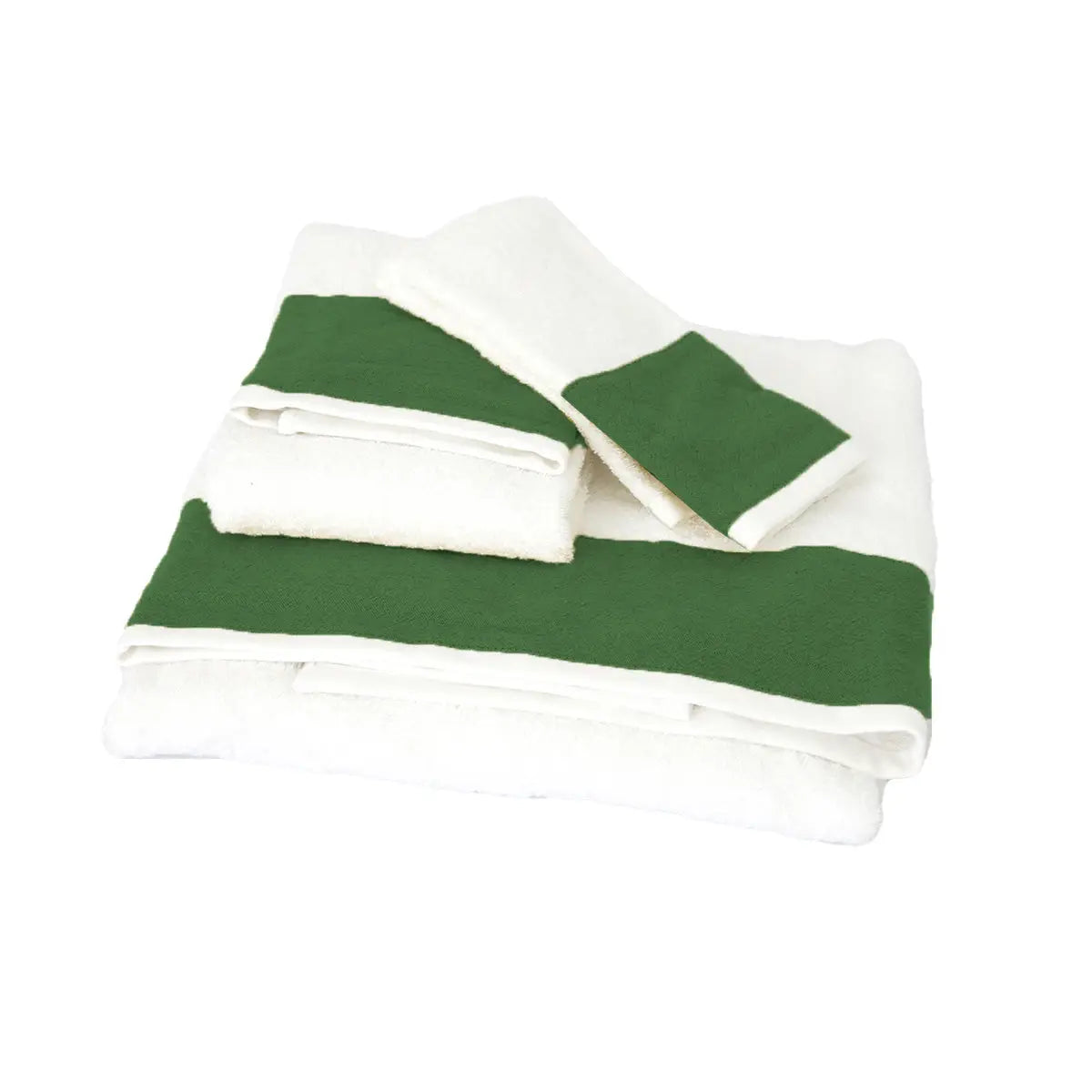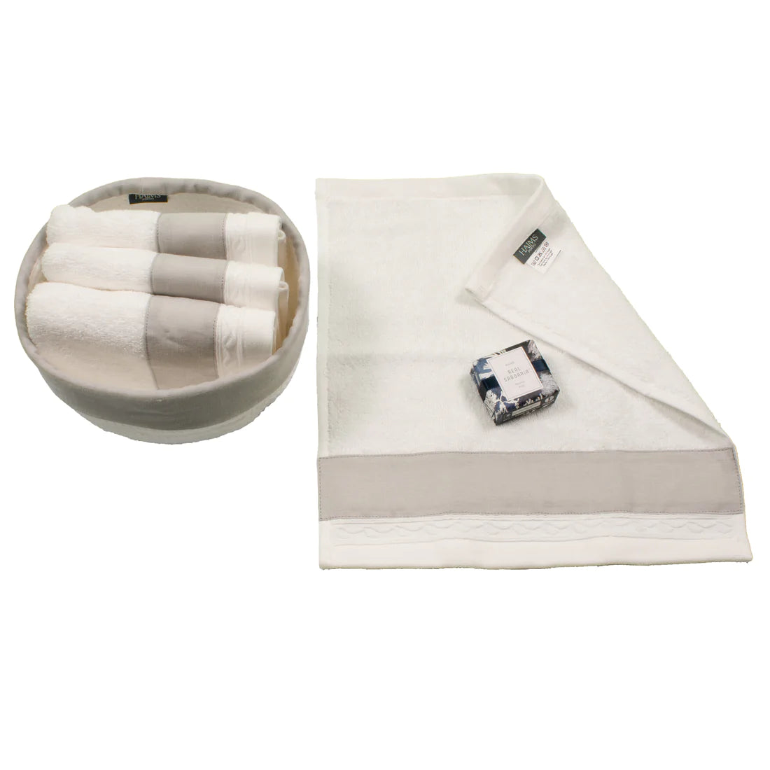 Adding a subtle touch of color to your bathroom or keeping it neutral with the white linen border.